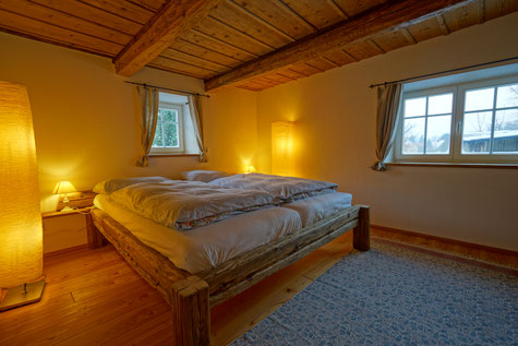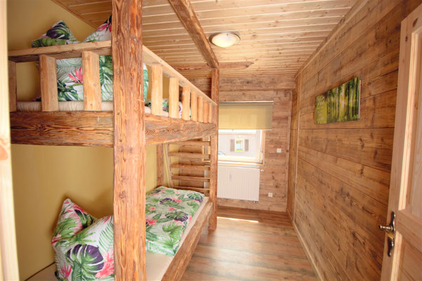 Dieses gefertigte Balken - Doppelstockbett wurde in einer Ferienwohnung eingebaut.