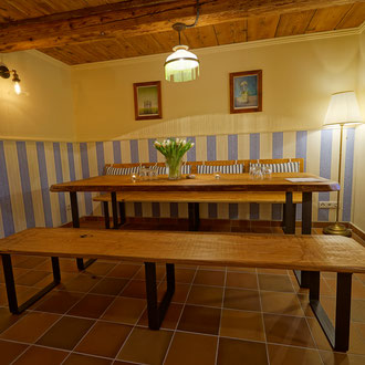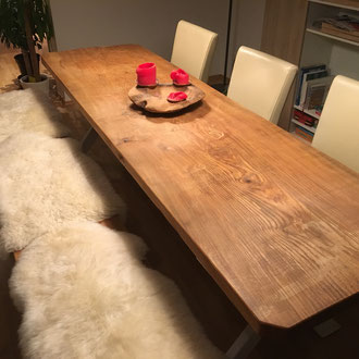 Der Peis für den Tisch mit den Abmaßen 300x90x76cm ohne Bank beträgt 1250€ .